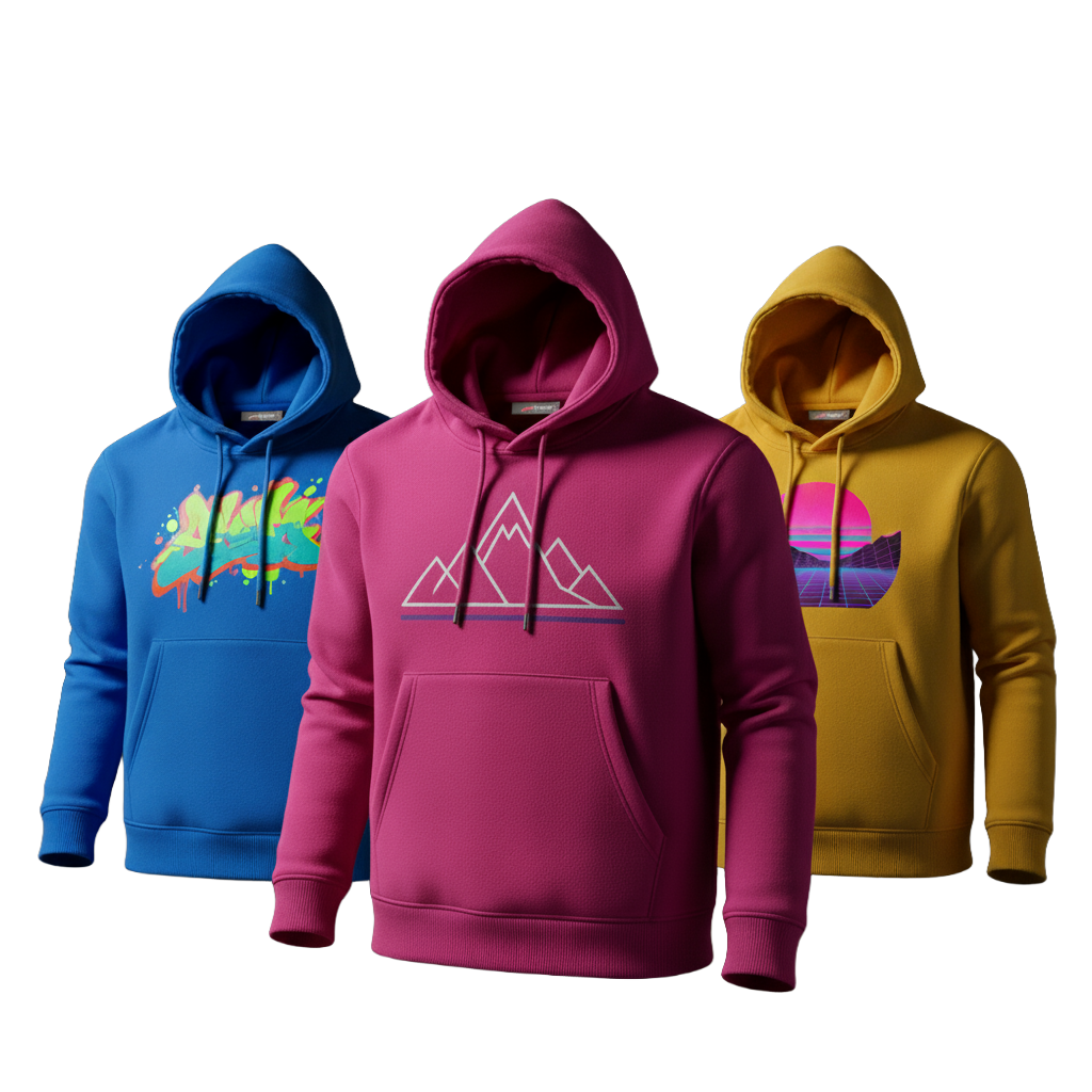 Poleras y Polerones: estampados con técnicas como DTF, vinilo, serigrafía y bordado, para prendas duraderas y llamativas.